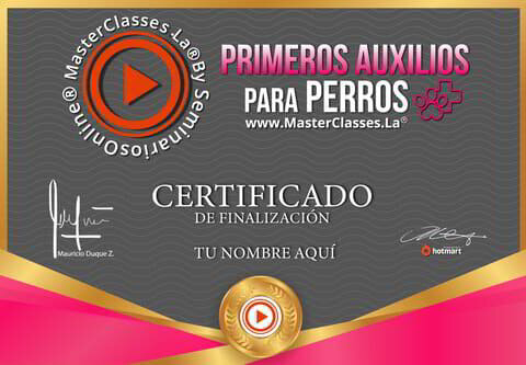 Al finalizar el programa recibirás este certificado que avala los conocimientos adquiridos y de que has completado tu preparación para poder asistir a tu perrito, o los de alguien más, de manera oportuna, certera y efectiva. La satisfacción de haberlo logrado y de saber que podrás cuidar de tu peludito, es incomparable.